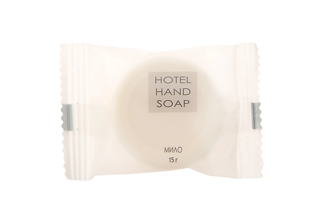 Мыло гостиничное 15 гр. круглое в флоу-пак упаковке. Возможен заказ логотипной продукции от 500 штук.